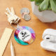 A keychain with the text: Be Awesome written inside a white circular frame. The background is a fancy artistic abstract design. Watercolor painting with the colours mixing and mingling creating a nice flowing layered marble look.