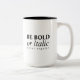 Stylish and chic, this Be Bold Or Italic, Never Regular Coffee Mug is perfect for writers and anyone who never want to be just like everyone else. Be different or stay home.