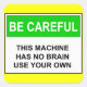Be Careful - No Brain Warning Square Sticker