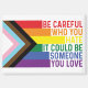 Be Careful Who You Hate, It Could Be Someone You Love magnet This is an inclusive LGBTQ Pride magnet. Great magnet for celebrating Pride Month, Support marriage equality human rights and show your gay pride, bisexual pride and transgender pride this Pride Month!