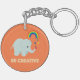 Cute motivational keychain of an adorable baby elephant being creative painting a rainbow. This keychain is designed with love by Aubergine and Purple.