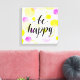 Modern calligraphy inspirational quote - be happy - at pink and yellow watercolor dots background | Bigstock® - All Rights Reserved.
