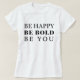 The t-shirt features a motivational message of 'Be Happy Be Bold Be You' written in bold letters.