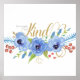 Poster has watercolor effect flowers, leaves, ferns & berries, and the quote "Be humble and Kind". The word, "Kind" has a glitter effect.