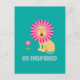 Send someone a bit of inspiration with this cute postcard of a lion with a flower mane being inspired by a flower. Remind someone sometimes we only need to look around at our surroundings to be inspired. This postcard is designed with love by Aubergine and Purple.