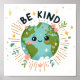 Features a smiling Earth and the message "Be Kind"