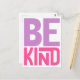 A modern typography design of the inspirational words Be Kind in bold purple and pink lettering.