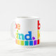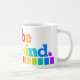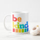 Be kind, rainbow-coloured graphic mug. Ideal to promote kindest and care to those around you. Other items matching items are also available. Exclusive rainbow graphic text and hearts design by www.mylittleeden.com