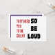 They need you to be silent so be loud invitation, great for fundraisers. This is a very basic invitation template on the back side of the design. Authoritarians thrive on silence, on complacence, on complicity. There are more of us than there are of them so let's be loud. Design description front: On the left, the words, They need you to be silent in restrained red font. On the right, the words, so be loud in a larger bolder black font. Design description back: A rectangular box with customizable colors. As shown, it has a dark purple border and a light purple fill box, indicating that mutual aid should be bipartisan. There are 7 lines of text. The first three lines are for describing the event. The next two lines are for date and time. The final two lines are for telling people to check a website for more information.