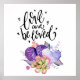 Beautiful watercolor succulents bouquet with Love and Be Loved text overlay in modern script