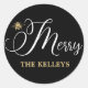 Be Merry Holiday Envelope Seal, Black & Gold Classic Round Sticker
