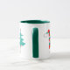 This unique holiday mug is bright and colourful, with typography that says "EAT, DRINK, AND BE MERRY". Colours used include lime green, red, and teal blue. Above the text on each side is a teal bird. On one side is a Christmas tree with pastel blue and pink bulbs, and a striped Santa hat is on the other side. Festive! *Clip art used in this design is copyrighted by Encore Software, Inc., which permits use to its licensors. All rights reserved.