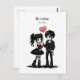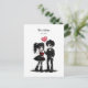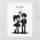 A darkly cute Valentine’s postcard for lovers of all things gothic. This design features an adorable goth couple dressed in black, holding a heart balloon and blood-red roses, paired with the playful yet dramatic phrase “Be mine. Or else.”