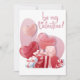 A vibrant, animated scene unfolds with floating heart-shaped balloons gently swaying in the air. Gifts wrapped in shiny red and white paper are stacked playfully, while a large heart-shaped box sits prominently in the foreground. The camera performs a slow zoom in, capturing the glossy textures and cheerful colors. Soft, warm lighting enhances the romantic atmosphere, creating a joyful and inviting mood. The scene is styled in a modern, playful illustration, perfect for a Valentine's Day celebration.