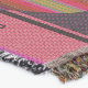 A quality printed throw has its advantages. This is a much finer weave throw than its loopier cousins, and though lighter, it is worth the investment for custom room accessorizing. The back is much prettier than the typical brown, and the fringe on the long sides very vivid, the selvage nicely done. Before photographing, I washed the throw in cold water, delicate, with a thicker woven throw the same size. On tumble dry low, this throw was dry in half the time as the other. This is a very practical quality if you use throws for furniture covers or to wrap up in frequently. The sleekness of the fabric makes it a great layer for accenting or protecting without the feeling of sitting on too much stuff. Perfect for napping or when you feel a light chill coming on. The color printing is beautiful and on this fabric, matched the design and color of my Photoshop image. This is an advantage for blending room fabrics and colors. The fringe on the short sides prints the colors from the design image and therefore varies from the side fringe. I streaked a white fractal line through the plaid pattern to give the illusion of weaving. This printed as crisp as an illusory thread, and put some white in the short side fringe, showing another advantage of print vs loomed- for artistic purposes, line lines, detail, and color integrity can be planned and preserved. My loomed throws have color limitations and more of a needlepoint texture. Print throws reproduce an exact image. The throw felt a little stiff straight out of the package, but this went away in the first delicate wash. Of course I searched the wash water for ink or bleeding and there was none.