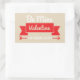 This fun Valentine's Day sticker design features a red banner and the text 'Be Mine Valentine' '14 February'. Beige background is optional and can be changed to any colour.