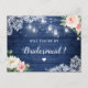 Be My Bridesmaid Proposal Rustic Blue Blush Floral Invitation Postcard