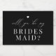 Modern minimalist, Bridesmaid proposal bottle label. Elegant typography design in white with heart accent and calligraphy graphic phrase on black background.