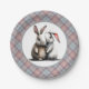 A Cute Grey Plaid Paper Plate With A Pair Of Snuggle Bunnies For Easter