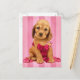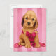 Cute golden cocker spaniel puppy with big hot pink bow,painted by artist Maryline Cazenave.