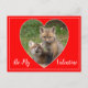 Two red fox kits share a moment just outside their den. Be My Valentine text.