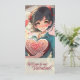 Colourful manga Valentine's card with a lovely girl holding a red heart and framed by sweet details. The front shows an enchanting "Will you be my Valentine?" in playful letters. A heartfelt gesture full of love and charm.