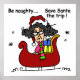 Be naughty and save Santa the trip! Funny holiday T-shirts, sweatshirts, magnets, mugs, cards, stickers, tote bags, keychains, mousepads, pillows, placemats, and other holiday humour apparel and gifts featuring Stella in Santa's sleigh.