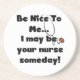 Nurse text T-shirts, mugs, cards, stickers, buttons, bags, and other nursing apparel and gifts with a stethoscope and text that reads "Be nice to me...I might be your nurse someday!".