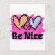 Be Nice Watercolor Hearts Postcard