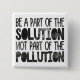 With its smoggy caption, this pin raises awareness about pollution: Be a part of the solution, not part of the pollution!