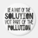 With its black smoggy caption on a white background, this magnet raises awareness about pollution of our Planet: Be a part of the solution, not part of the pollution!