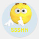 The classic yellow emoji "be quiet" cartoon facial expression emoticon with the letters SSSHH. Pick up some of these quality stickers today!