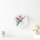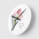 Inspirational quote wall clock with beautiful blush pink watercolor floral/tulips on a white background. Text says, "Be the reason someone smiles today."