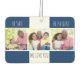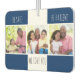 Create your own photo air freshener. The photo template is set up for you to add 3 of your favourite pictures, which are displayed in square / instagram format. The design has a blue and white colour palette and is lettered with the words "be safe .. be patient .. we love you". Affordable personalised gifts for friends or family.