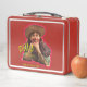 This is a standard metal lunchbox that appears to work just fine. We designed this box ourselves with an uploaded photo and custom text on the front and back. It looks absolutely beautiful except the front of the lunchbox is not centered like it shows in the photo. The print borders don't align with the inset flat part of the box where the preview photo online showed it perfectly centered in there. The back looks nice and centered though.