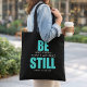 Psalm 46:10a "Be Still and Know that I Am God" Christian Quote Church Tote Bag. Neon blue design. Makes a great gift for everyone who loves God and Bible Scripture verses on things.