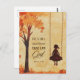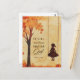 Christian postcard with inspirational quote scripture depicts a simple autumn tree with yellow and orange fall leaves and the silhouette of a young girl on a swing. It features an encouraging Bible Verse Psalm 46:10, "Be still and know that I am God." The greeting, prayer can be personalised or deleted for a hand written message.