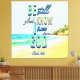 This design features modern text, with a beach graphic and the bible verse Psalm 46:10.