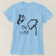 Be Still is the sentiment on a shirt with a silhouette of a butterfly and a flower