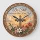 Bring a sense of peace and reflection to your home with this beautiful scripture-themed wall clock. The high-definition graphic features the inspiring verse from Psalm 46:10, "Be Still and know that I am God," set against a serene sunset sky with soft, glowing clouds. A central wooden-style cross is anchored by a vibrant arrangement of lilies, roses, and poppies, all rendered with a stunning 3D-style depth. While the outer frame beautifully mimics the appearance of hand-carved vine-work and the dial looks like sculpted stone, this is a lightweight and durable graphic timepiece rather than heavy natural materials. The clean white numeric markers provide excellent contrast against the warm, earthy tones of the background for easy reading. This high-energy design is an ideal focal point for a bedroom, prayer room, or living area, serving as a sophisticated and meaningful self-gift.