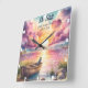 This serene square wall clock displays a tranquil lake scene at sunset, with soft pink and purple clouds reflecting on the water. A small wooden boat rests by the shore, featuring a blue bird. The inspiring "Be Still And Know That I Am God" text adds a peaceful, reflective spiritual touch to this beautiful natural landscape.