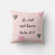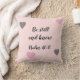 Psalm 46:10 pink throw pillow with hearts for indoor or outdoor decor.