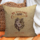 "Be strong and courageous" Deuteronomy 31:6 Christian Bible verse decorator pillow with a brown lion on a gold background. Beautiful warm autumn or winter colours for your home decor.