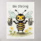 drawing of a cute little bee lifting heavy weights surrounded by flowers. Be strong
