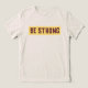 Make a powerful statement with this BE STRONG shirt. Featuring bold black lettering set against a striking yellow banner, this minimalist design delivers motivation, resilience, and confidence in a clean, modern style.