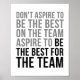 Don't be aspire to be the best on the team. Aspire to be the best for the team