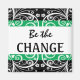 Be The Change- 3 word quote to motivate and inspire change in you!.The design is an attractive white swirls on green and black background.