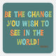 Multicolor text design reads "Be The Change You Wish To See In The World!" a quote by Gandhi and still a great quote to live by. Inspirational T-shirts, buttons, cards, bags, key chains, stickers, water bottles, mousepads, and more, great for teachers, students, educational professionals, parents, and anyone who wants to inspire change for the good!