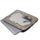 The sleeve is made of nice feeling material and seems very durable. I'm not sure how easy it'll be to clean, but the construction seems sound and the fabric is quick thick. I also like the double zipper. The printing is lovely and appears durable. The white on black contrast is nice, and the design very elegant.