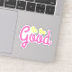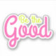 A cute and colourful design of the inspirational saying Be The Good in retro calligraphy in a fun colour palette of neon pink and yellow.